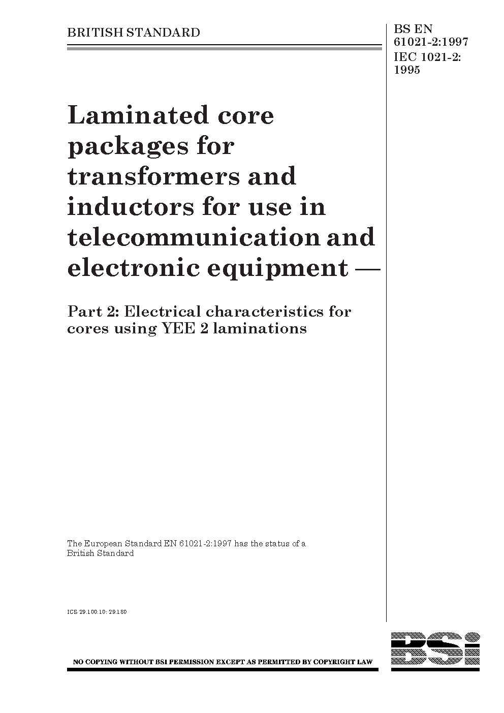 Laminated core packages for transformers and inductors use in telecommunication electronic equipment Electrical characteristics cores using YEE 2 laminations