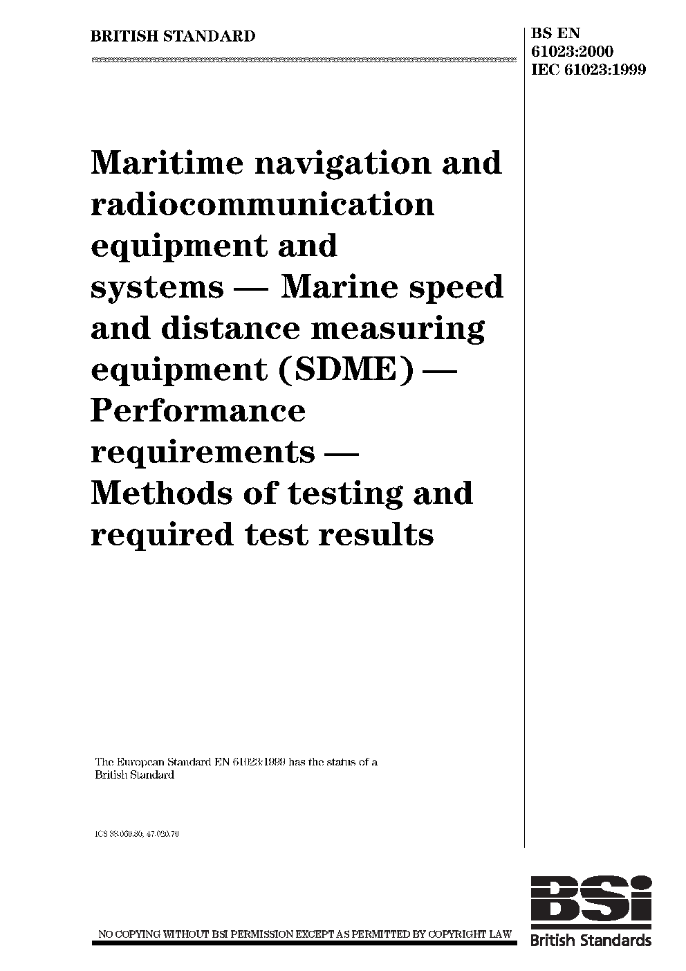 Maritime navigation and radiocommunication equipment and systems. Marine speed and distance measuring equipment (SDME). Performance requirements. Methods of testing and required test results