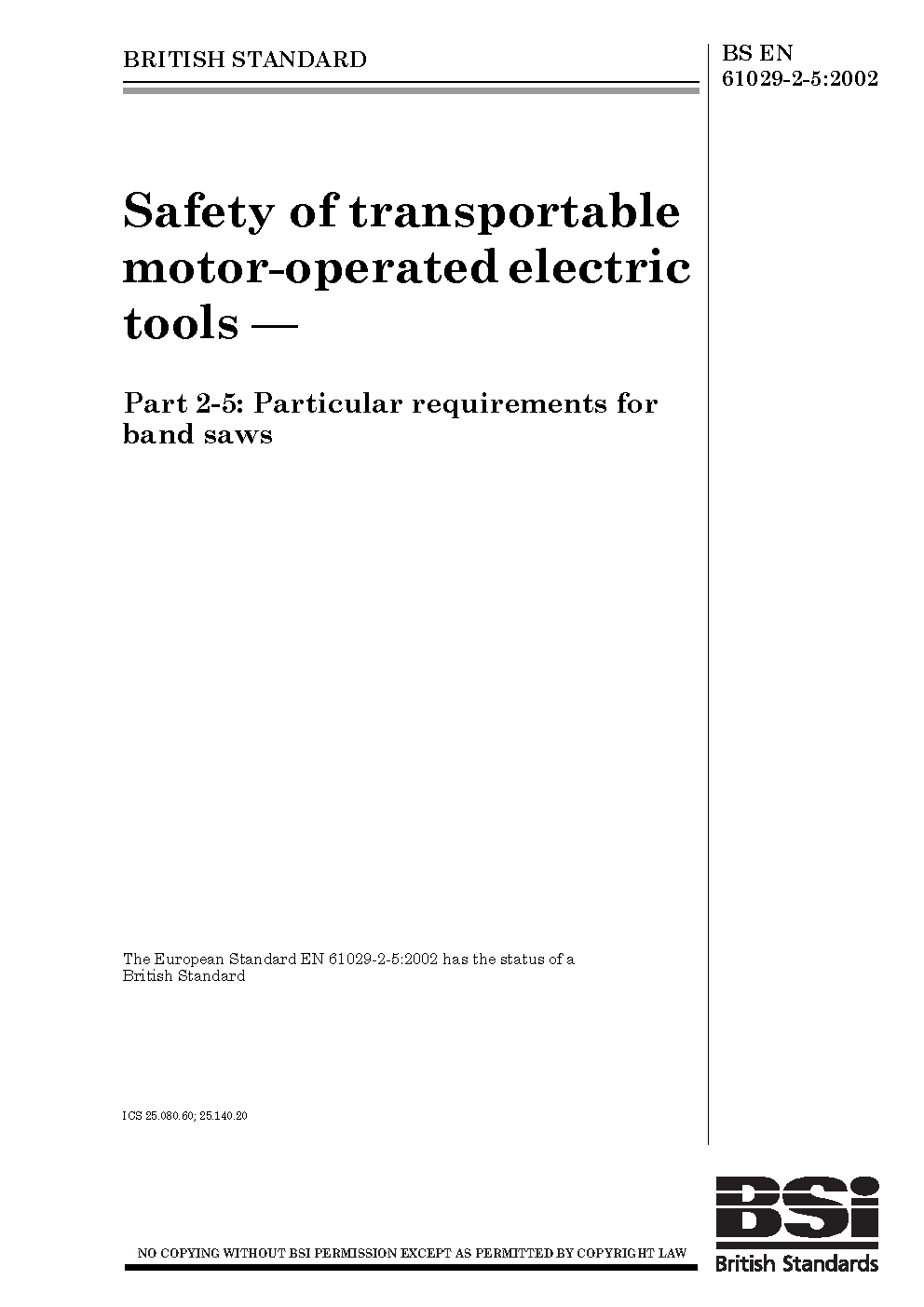 Safety of transportable motor-operated electric tools Particular requirements for band saws