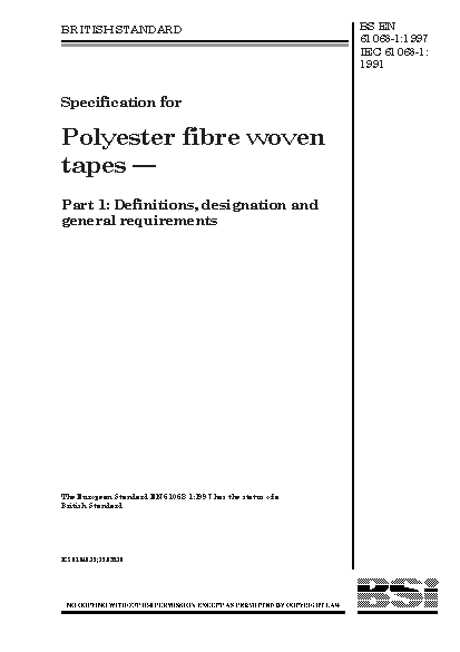 Polyester fibre woven tapes Definitions, designation and general requirements