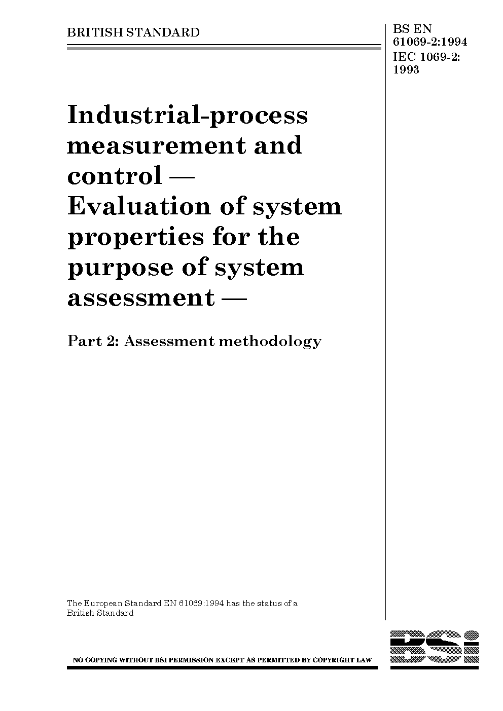Industrial-process measurement, control and automation. Evaluation of system properties for the purpose assessment Assessment methodology