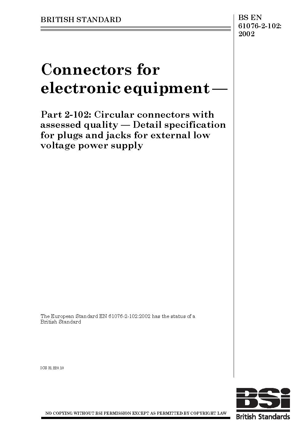 Electrical equipment;Electric connectors;Assessed quality;Dimensions;Circular shape;Electric plugs;Jacks (sockets);Electronic equipment and components;Ratings;Low frequencies;Direct current;Analogue circuits;Low-voltage equipment;Electrical testing;Digital circuits