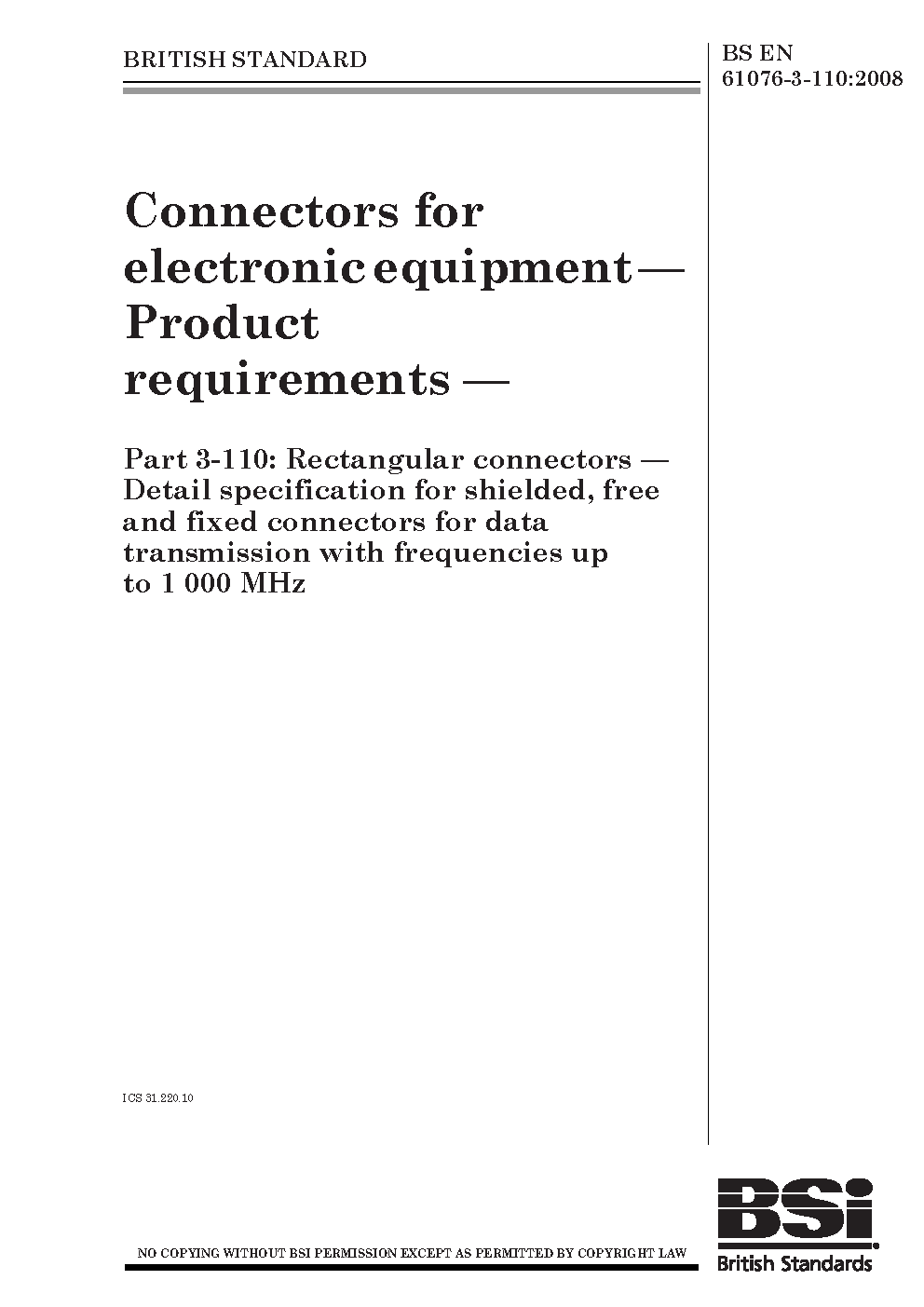 Connectors for electronic equipment. Product requirements Detail specification free and fixed connectors data transmission with frequencies up to 3 000 MHz
