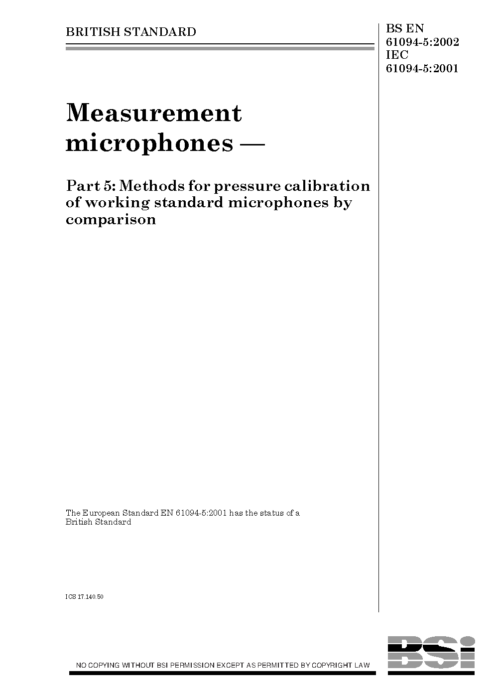 Electroacoustics. Measurement microphones Methods for pressure calibration of working standard by comparison