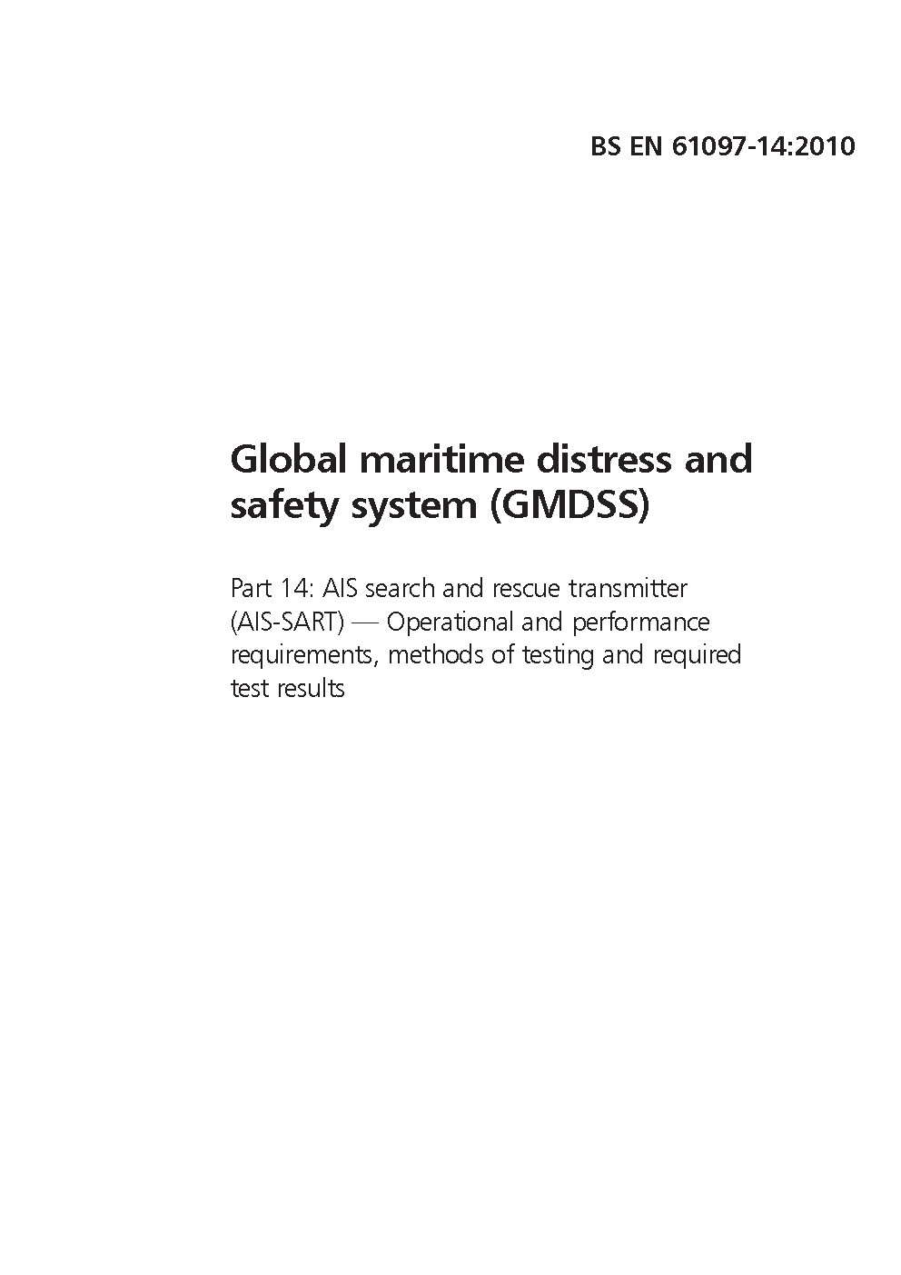 Global maritime distress and safety system (GMDSS) AIS search rescue transmitter (AIS-SART). Operational performance requirements, methods of testing required test results