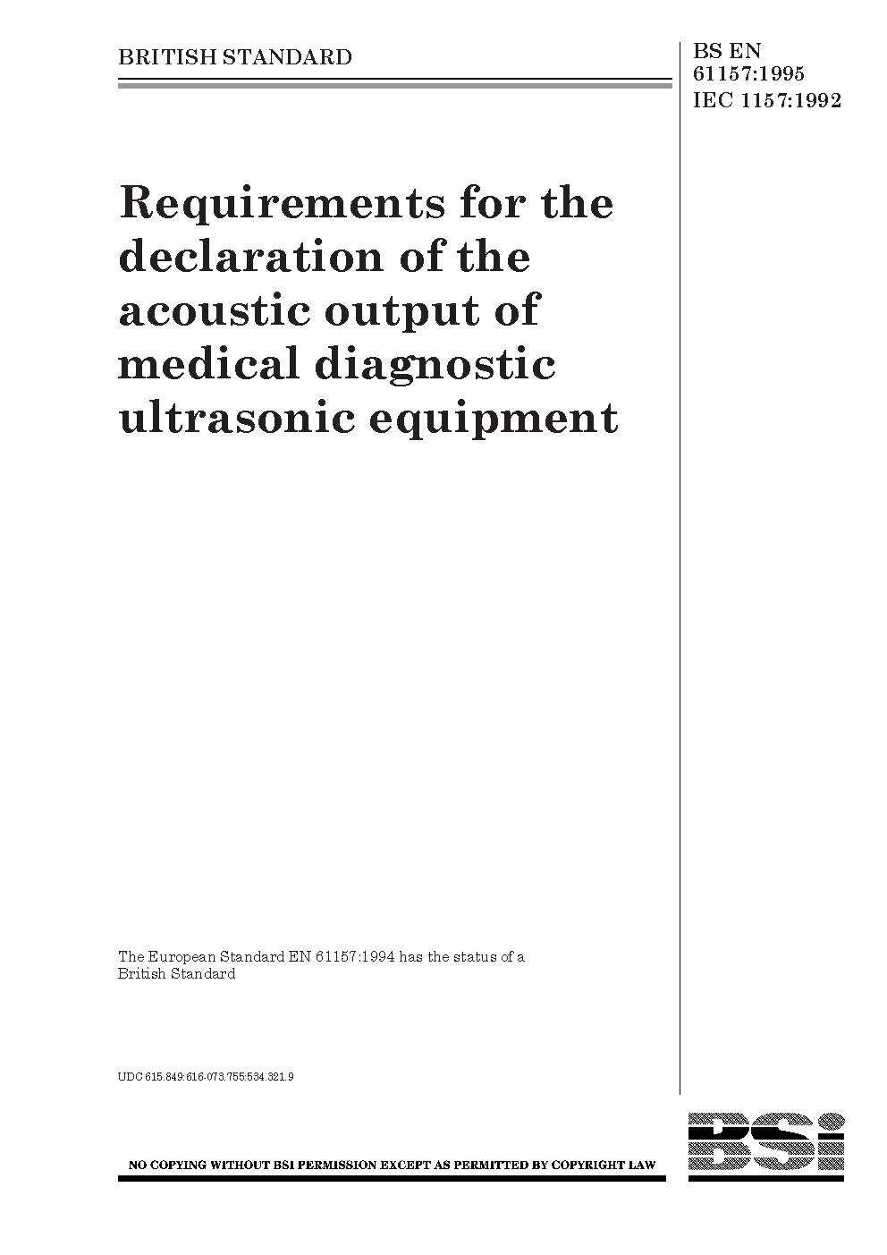 Requirements for the declaration of the acoustic output of medical diagnostic ultrasonic equipment