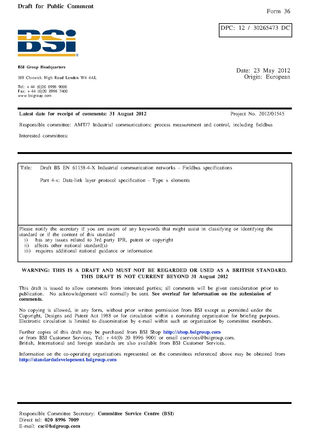 Fieldbus standard for use in industrial control systems Data link protocol specification