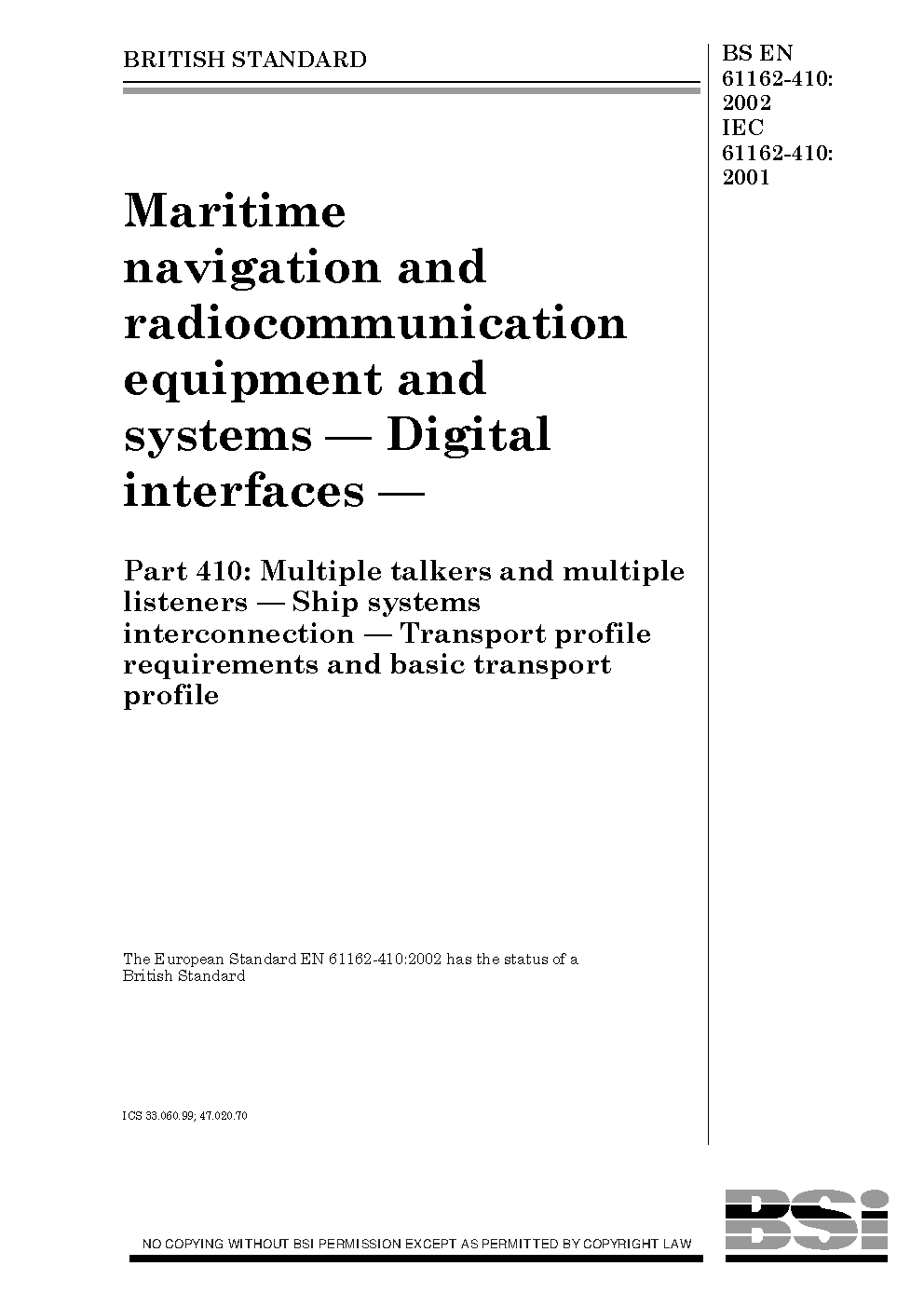 Maritime navigation and radiocommunication equipment systems. Digital interfaces Multiple talkers multiple listeners. Ship systems interconnection. Transport profile requirements basic transport