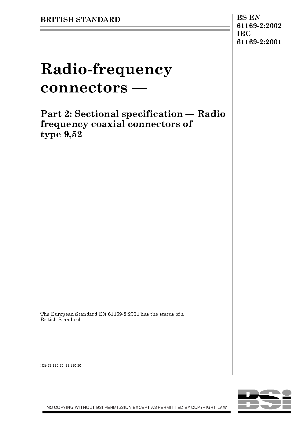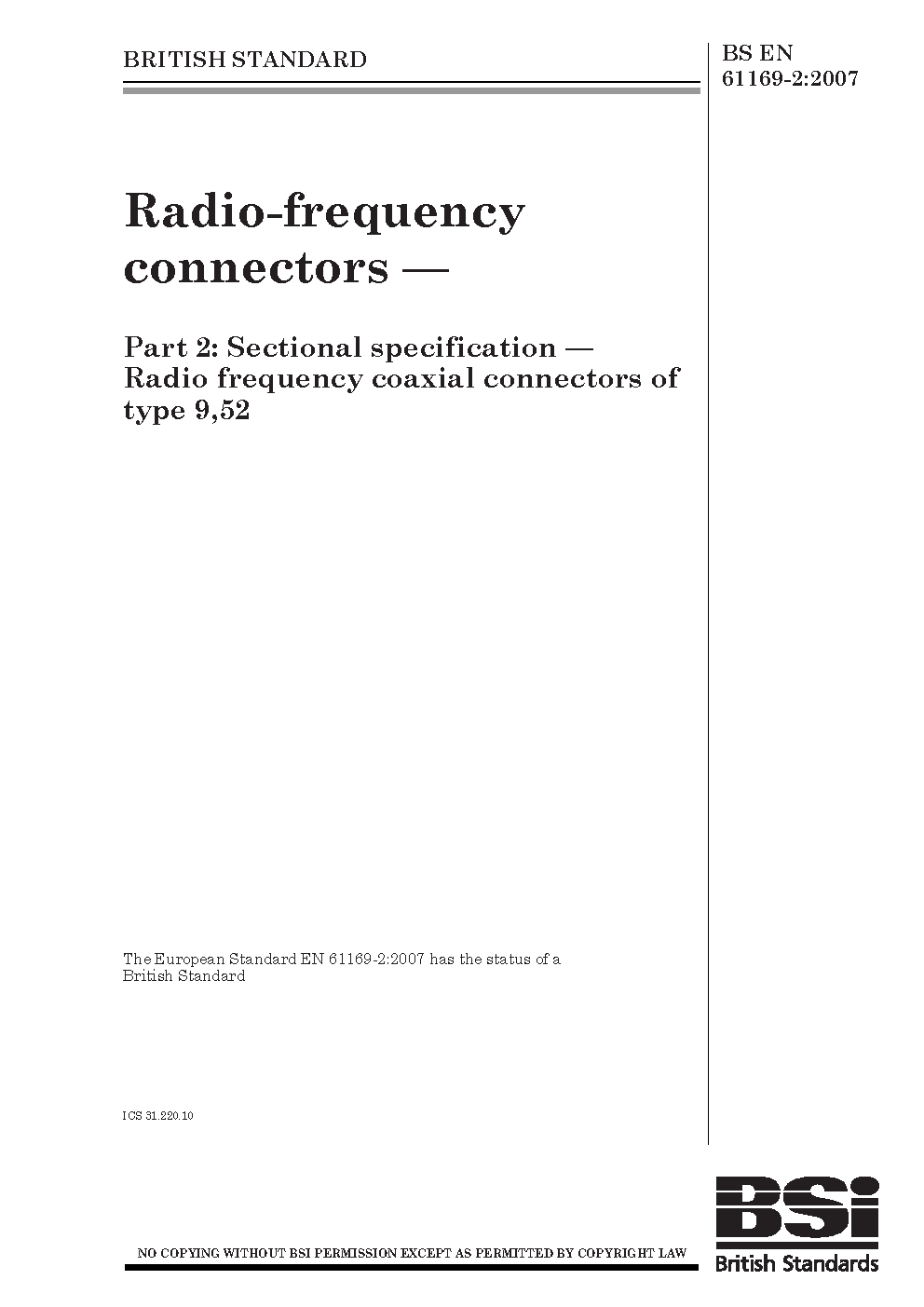 Radio-frequency connectors Sectional specification. Radio frequency coaxial of type 9,52