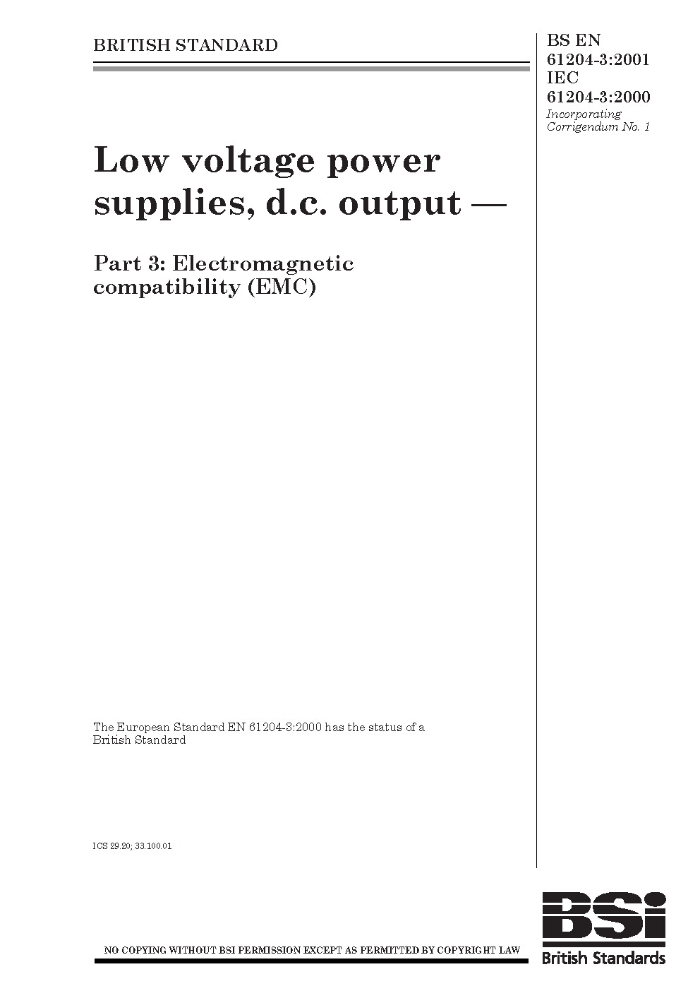 BS EN 61204-3:2001