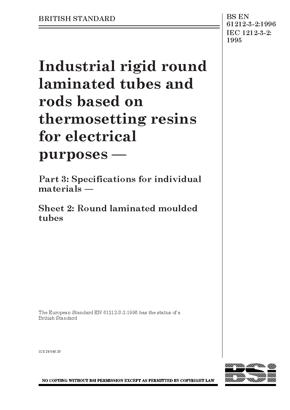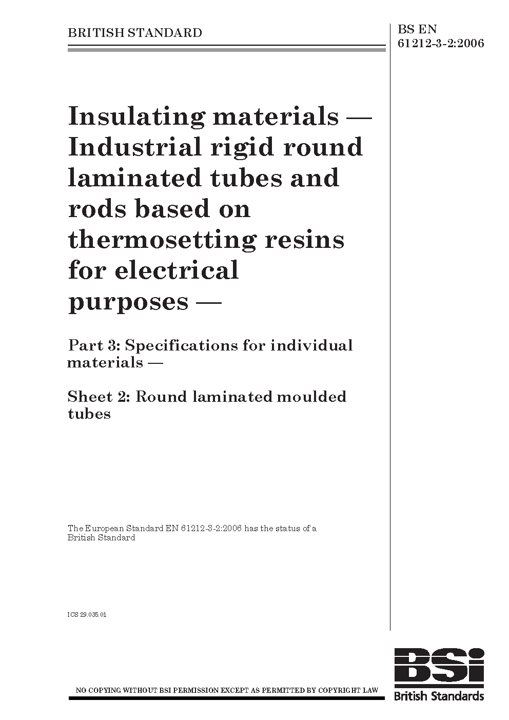 Insulating materials. Industrial rigid round laminated tubes and rods based on thermosetting resins for electrical purposes Specifications individual materials Round moulded