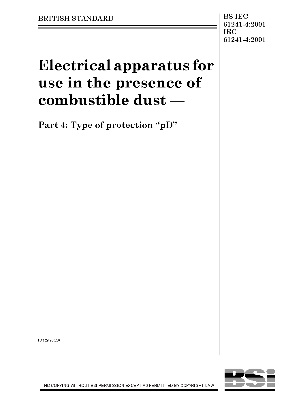 Electrical apparatus for use in the presence of combustible dust Type protection "pD"