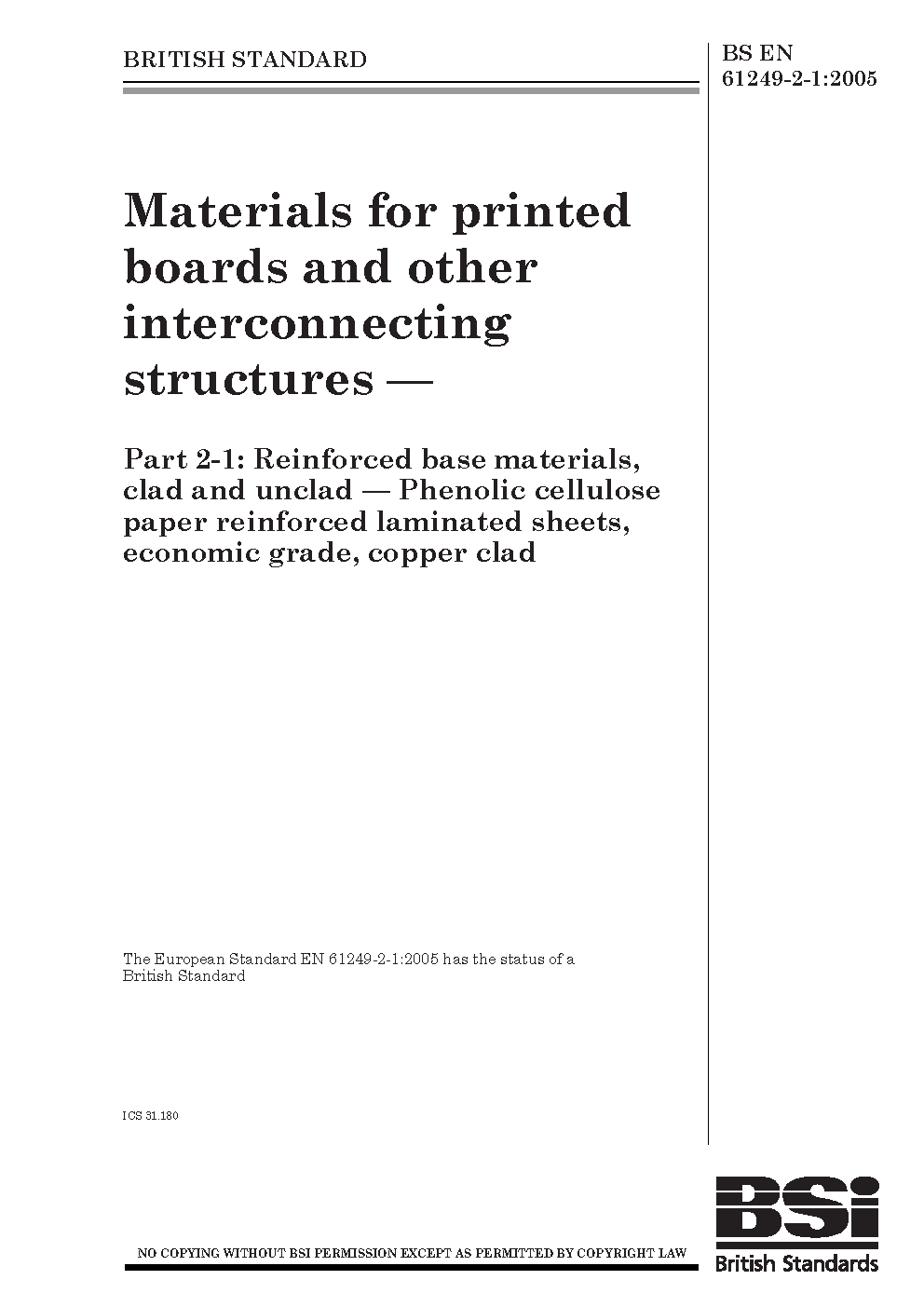 Phenolic resins;Flammability;Printed circuits;Sheet materials;Specification (approval);Paper;Laminates;Coated materials;Printed-circuit boards;Reinforced materials;Cellulose;Metal coatings;Printed-circuit bases;Copper