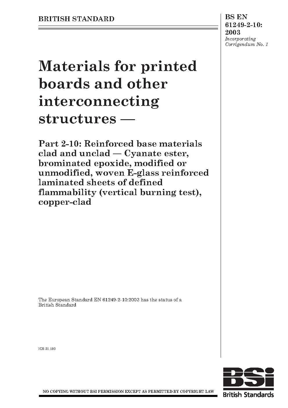 BS EN 61249-2-10:2003