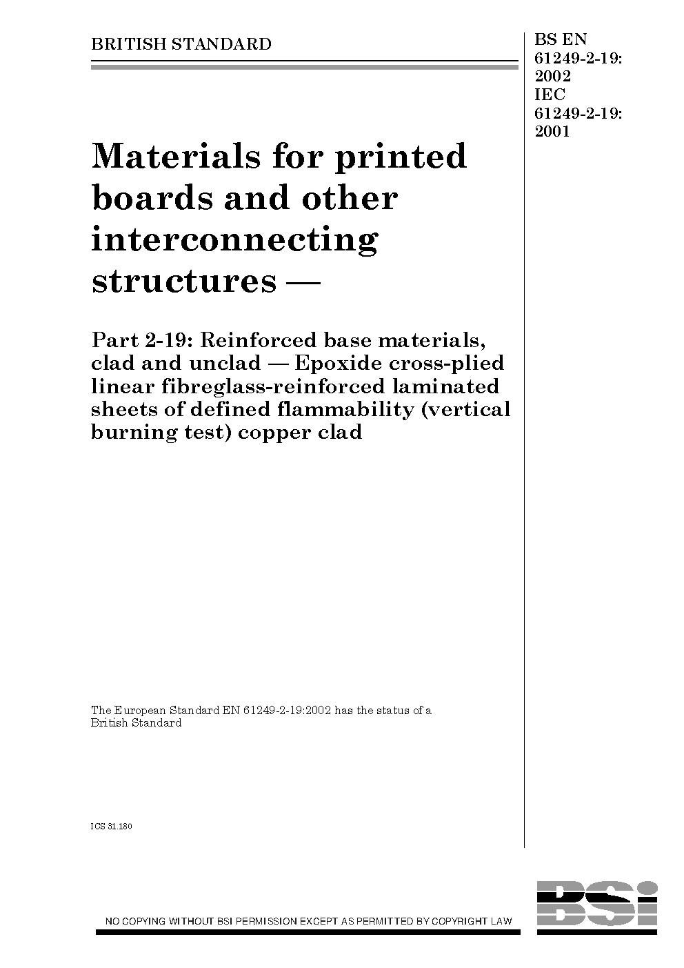 Plastics sheet;Printed-circuit bases;Combustion test methods;Printed-circuit boards;Coated materials;Specification (approval);Copper;Printed circuits;Epoxy resins;Reinforced materials;Flammability