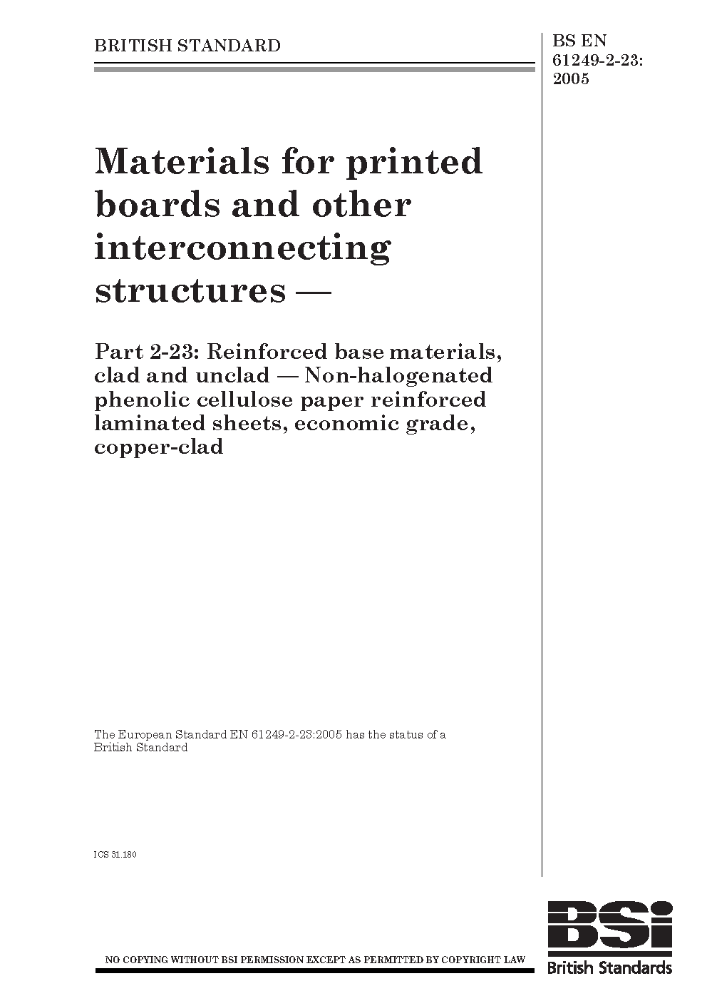 Printed circuits;Copper;Paper;Printed-circuit boards;Cellulose;Combustion test methods;Specification (approval);Flammability;Printed-circuit bases;Reinforced materials;Coated materials;Laminates;Sheet materials;Metal coatings;Phenolic resins