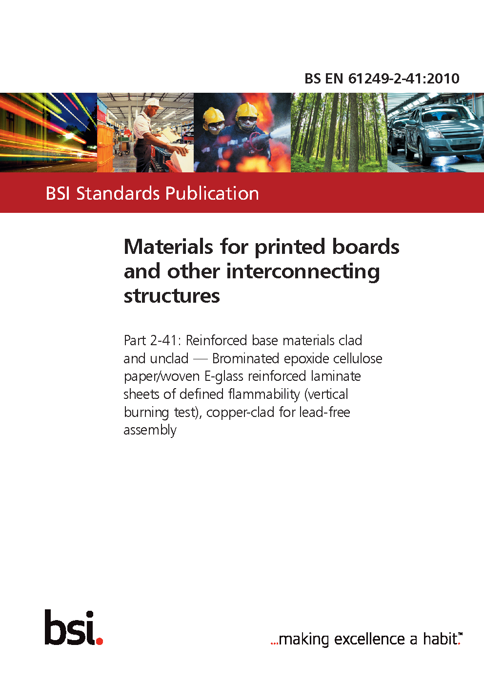 Materials for printed boards and other interconnecting structures Reinforced base materials clad unclad. Brominated epoxide cellulose paper/woven E-glass reinforced laminate sheets of defined flammability (vertical burning test), copper-clad lead-free assembly