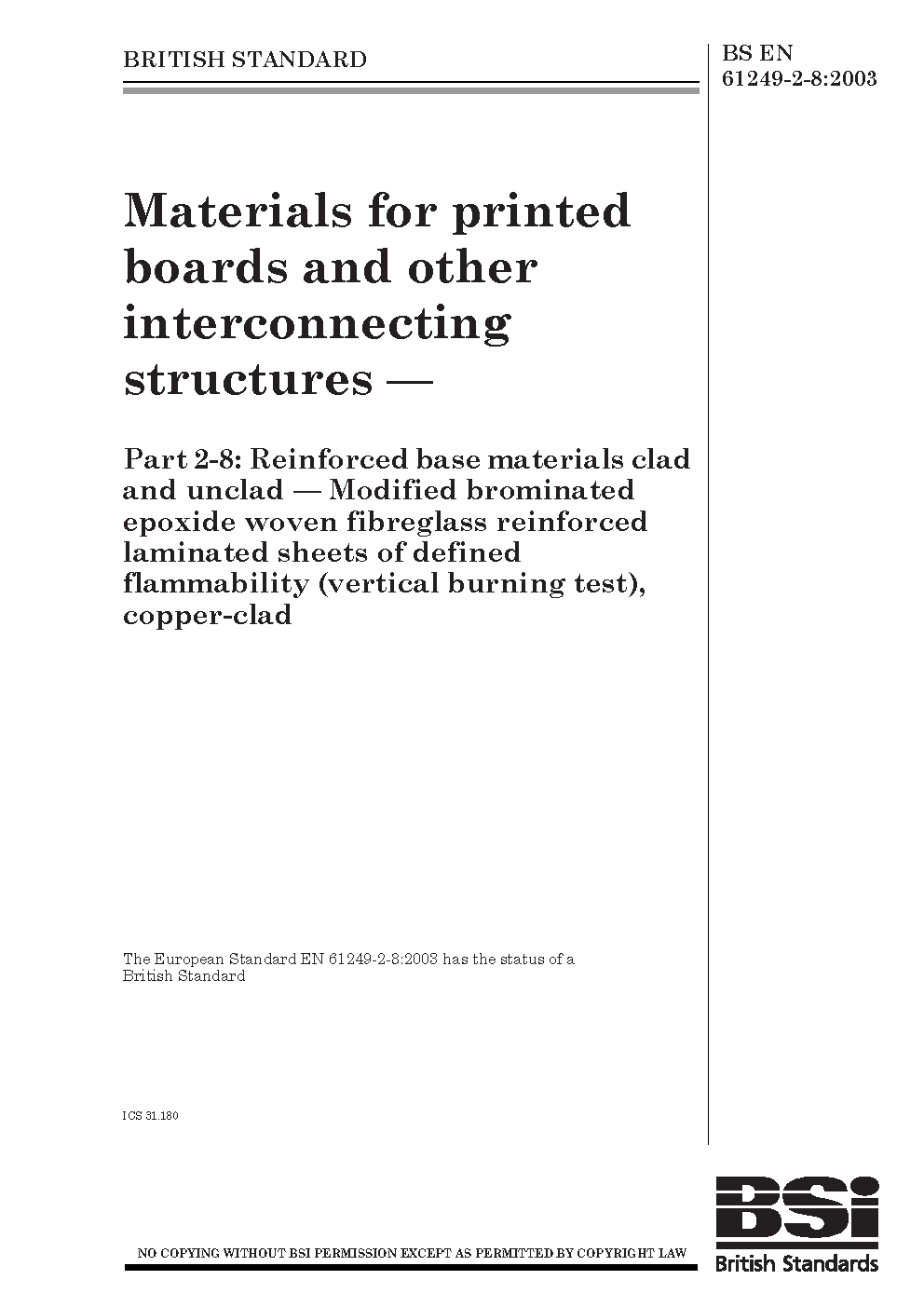 Glass fibres;Epoxides;Materials specification;Laminates;Electronic equipment and components;Printed-circuit boards;Reinforced materials;Printed circuits;Printed-circuit bases
