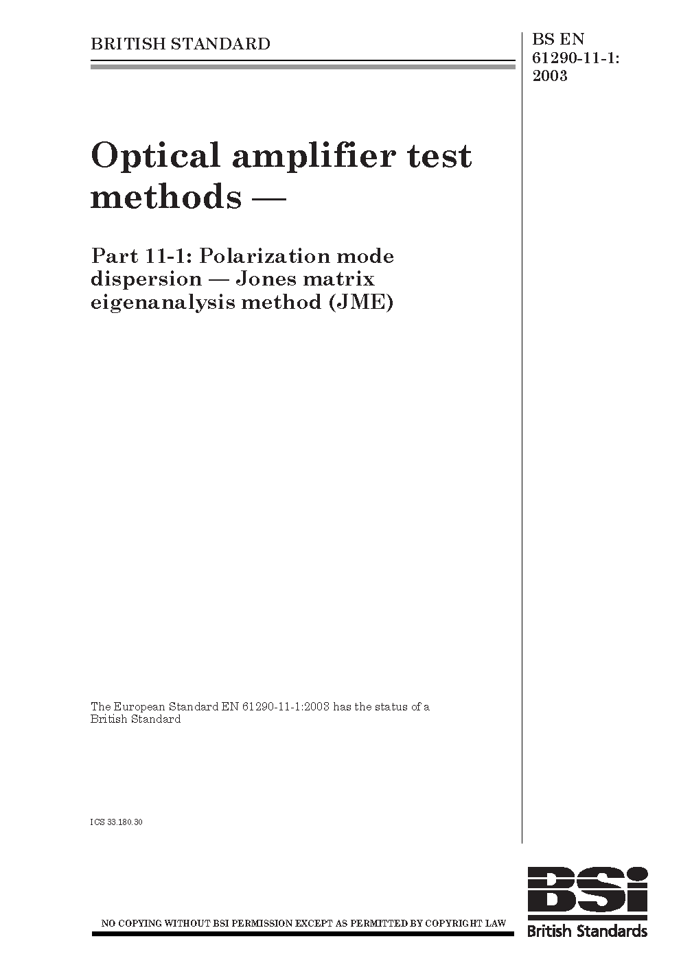 Optical amplifiers. Test methods Polarization mode dispersion parameter. Jones matrix eigenanalysis (JME)