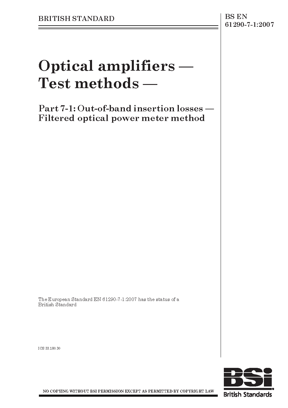 Optical amplifiers. Test methods Out-of-band insertion losses. Filtered optical power meter method
