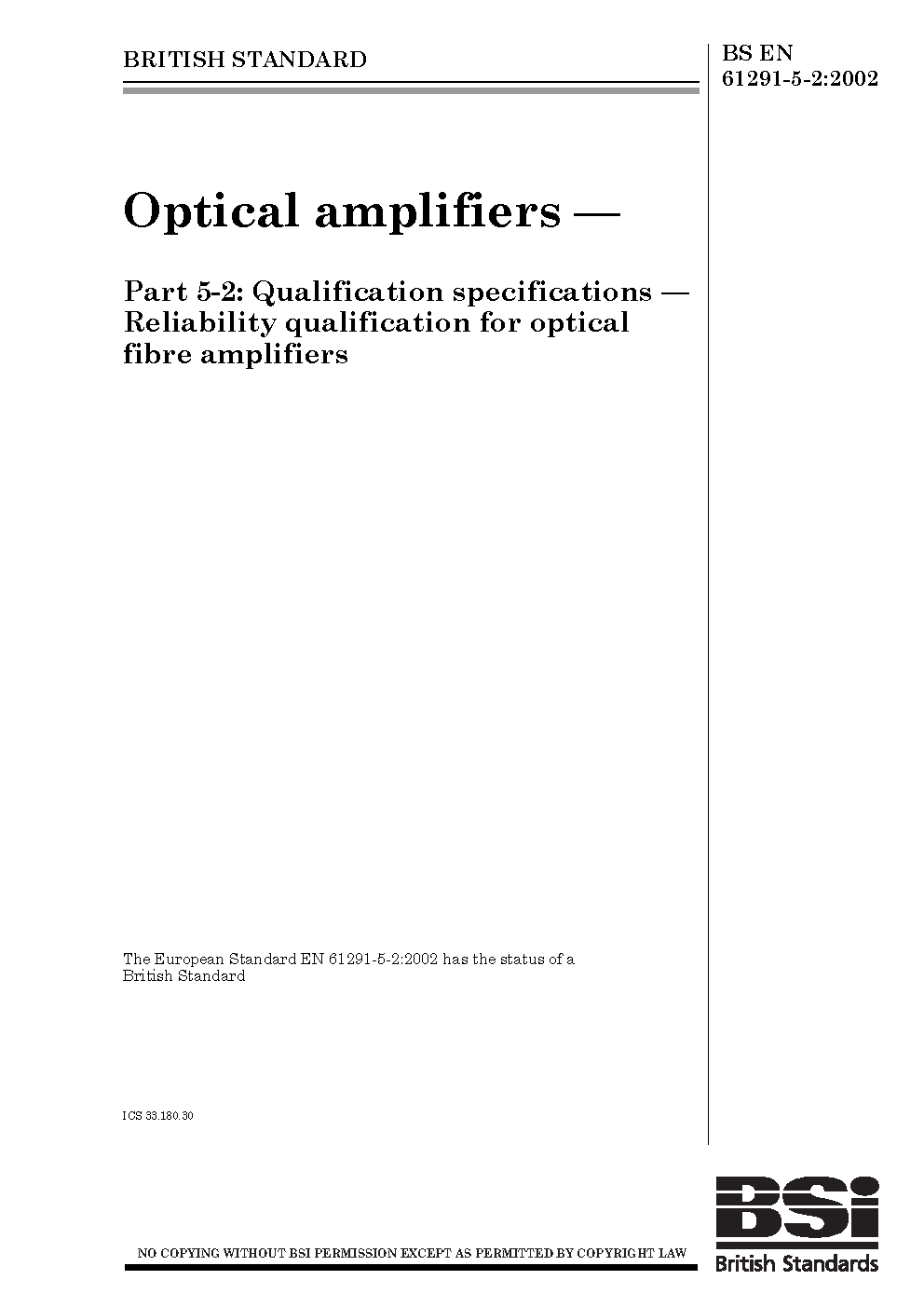 Optical fibre amplifiers. Qualification specifications Reliability qualification for optical amplifiers