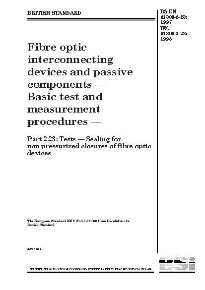 Fibre optic interconnecting devices and passive components. Basic test measurement procedures Tests. Sealing for non-pressurized closures of fibre