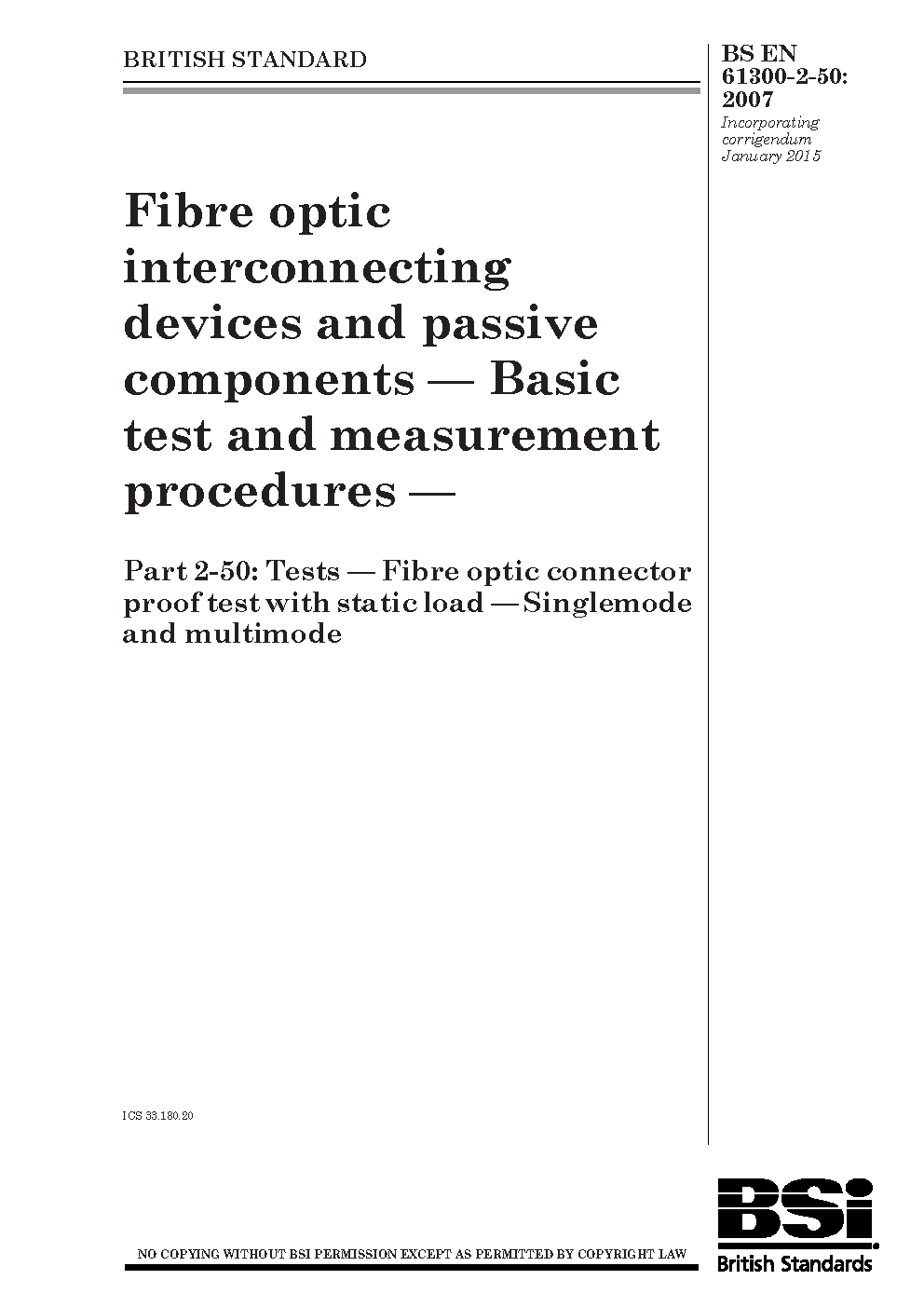 Fibre optic interconnecting devices and passive components. Basic test measurement procedures Tests. connector proof with static load. Singlemode multimode