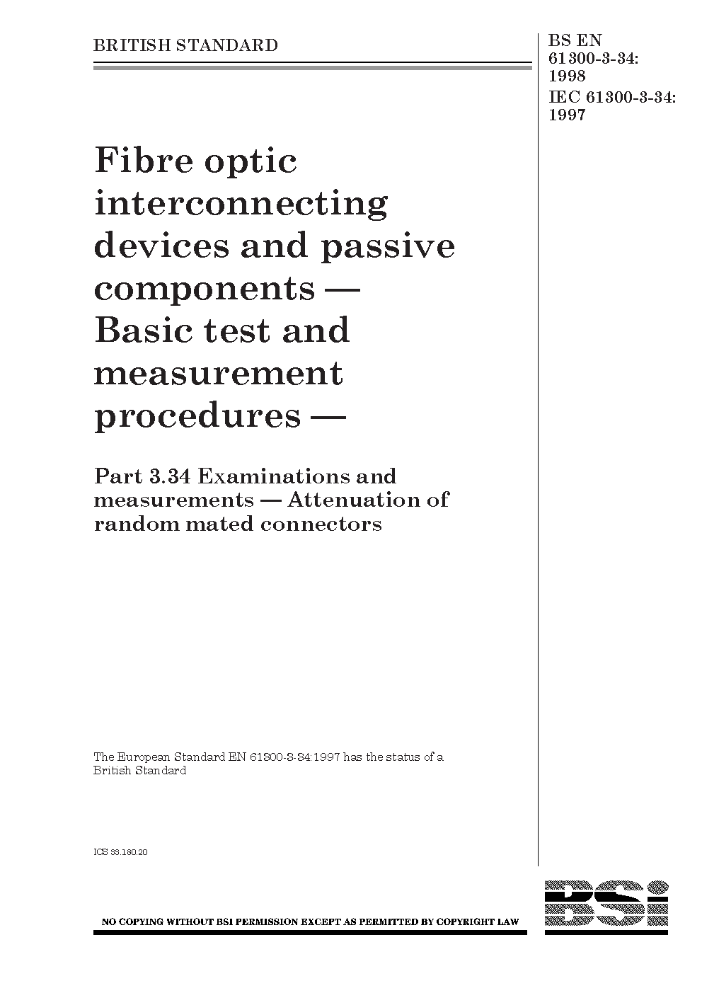 Fibre optic interconnecting devices and passive components. Basic test measurement procedures Examinations measurements. Attenuation of random mated connectors