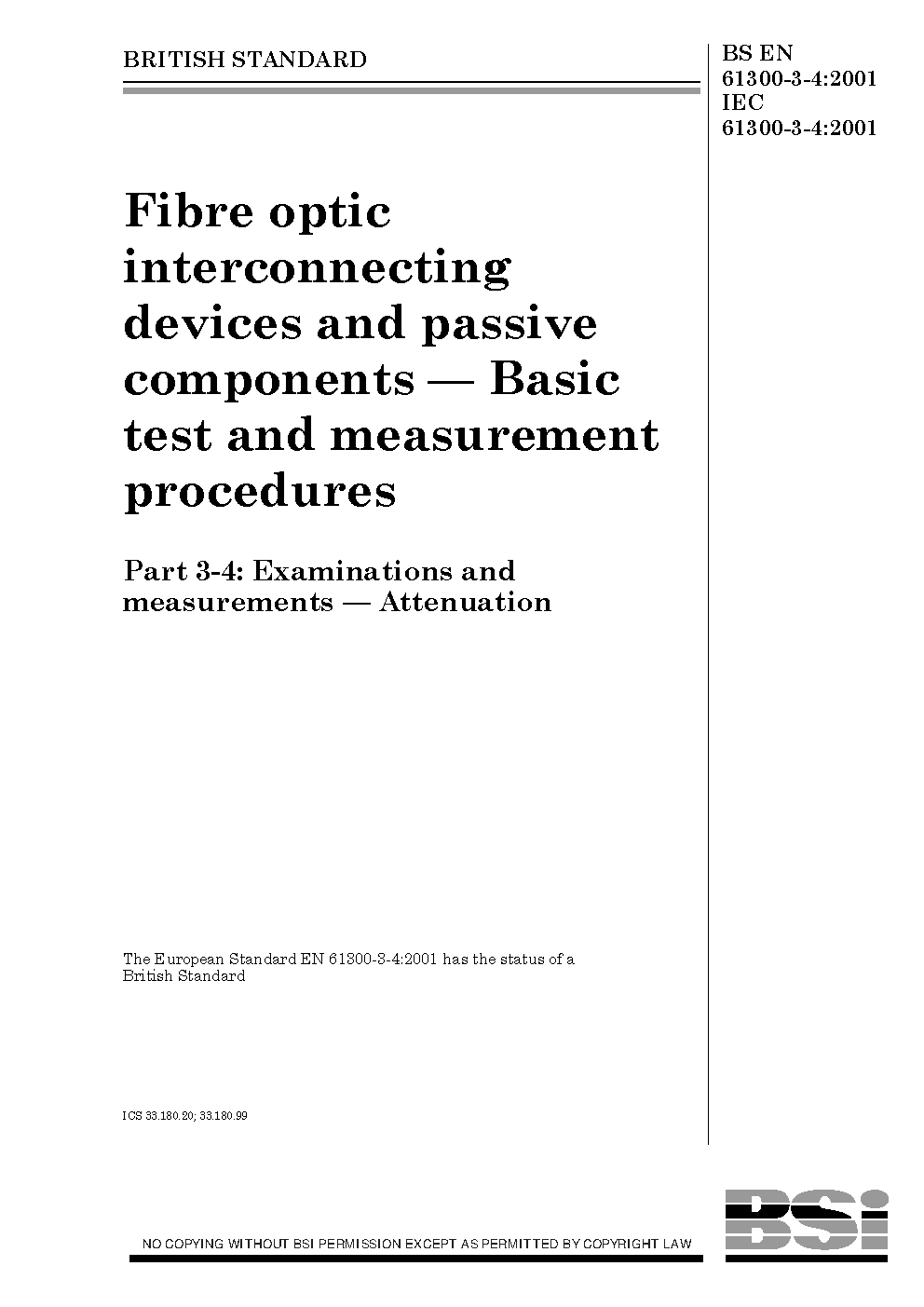 Fibre optic interconnecting devices and passive components. Basic test measurement procedures. Examinations measurements Attenuation