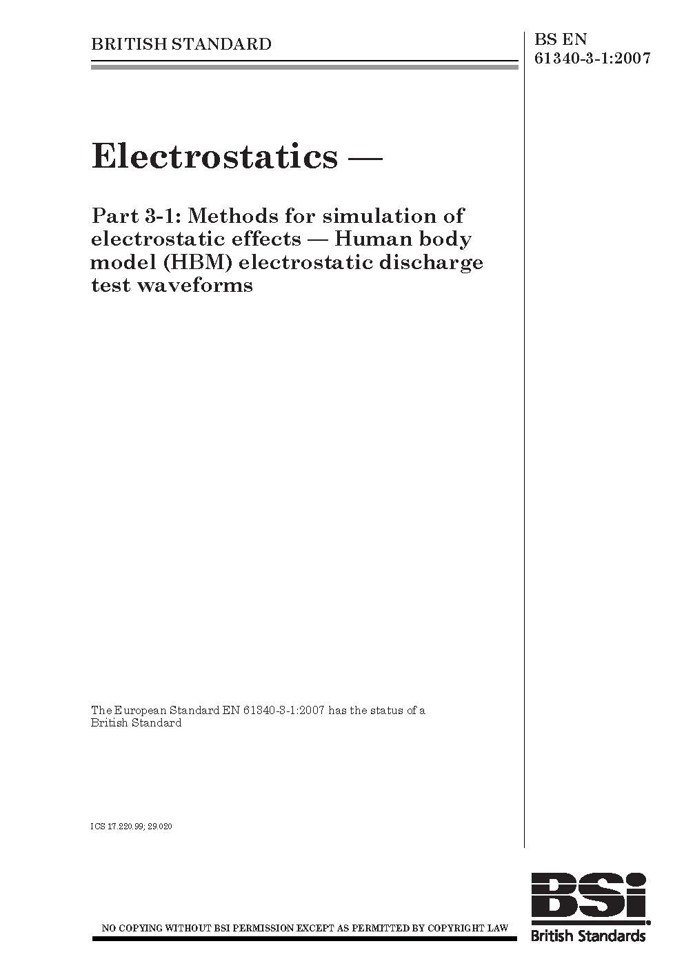 BS EN 61340-3-1:2007