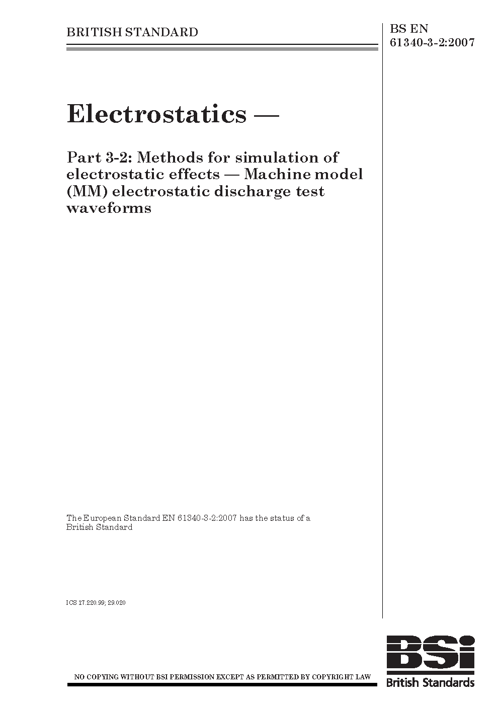 Electrostatics Methods for simulation of electrostatic effects. Machine model (MM) discharge test waveforms