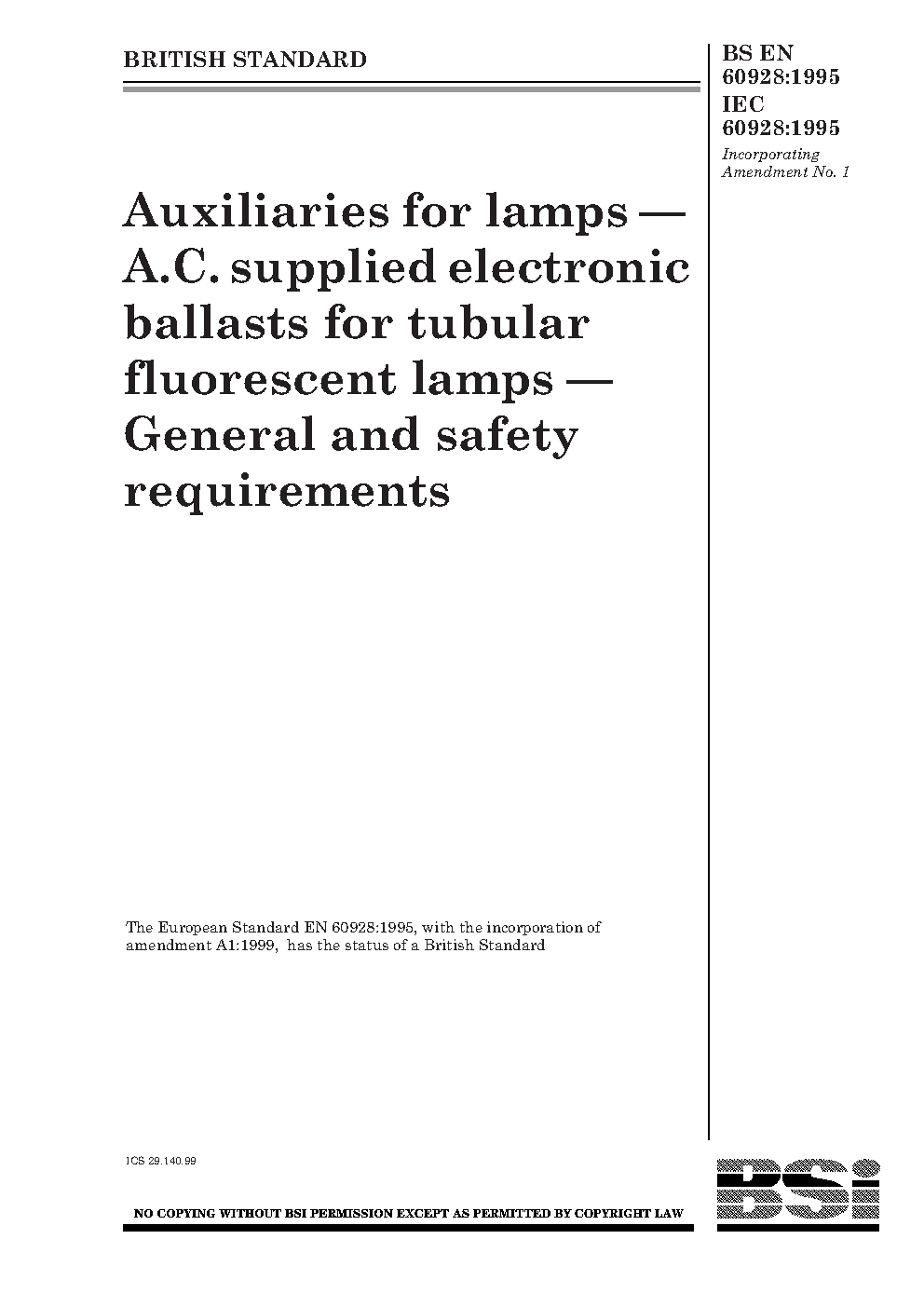 Lamp controlgear Particular requirements for a.c. supplied electronic ballasts fluorescent lamps