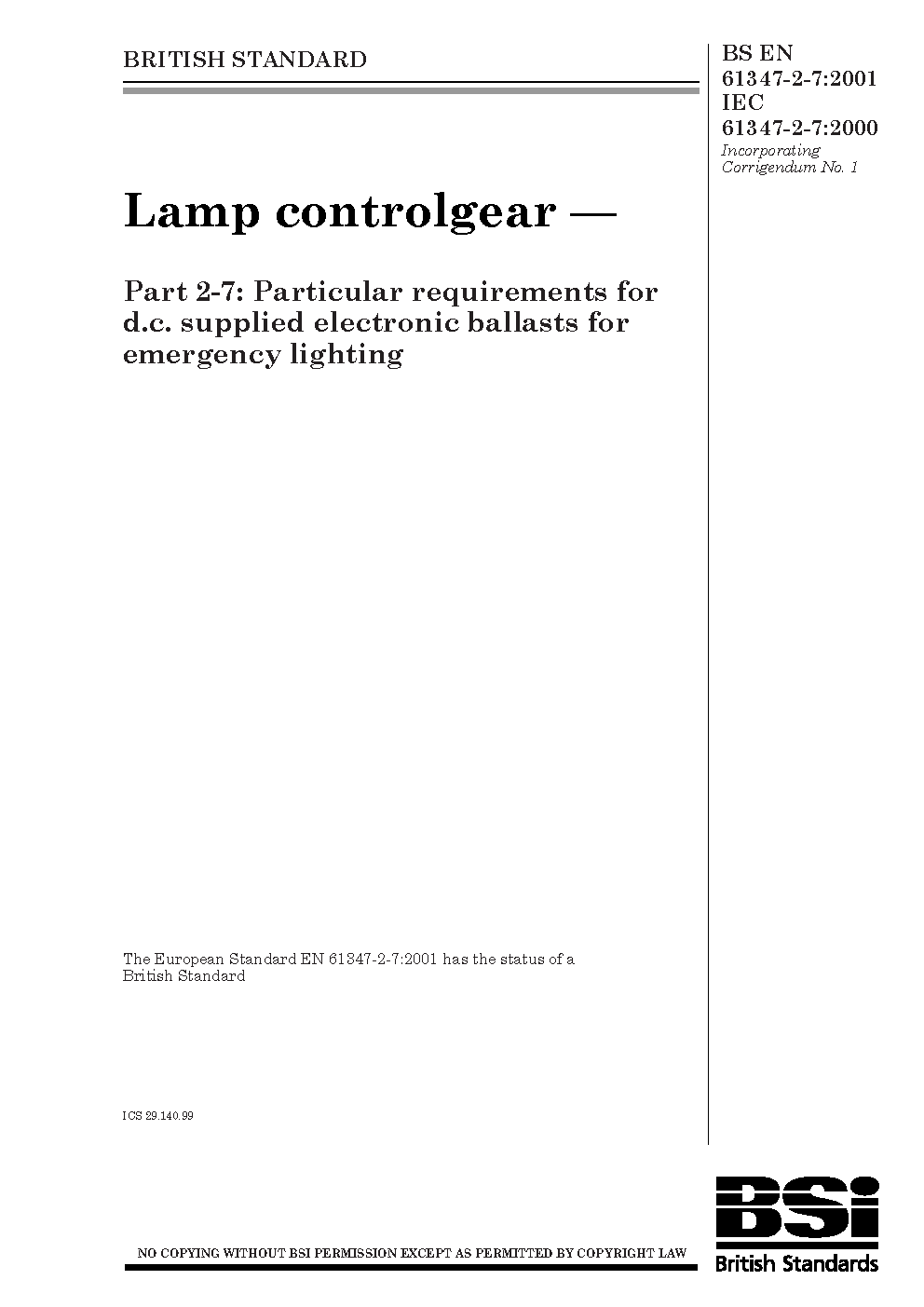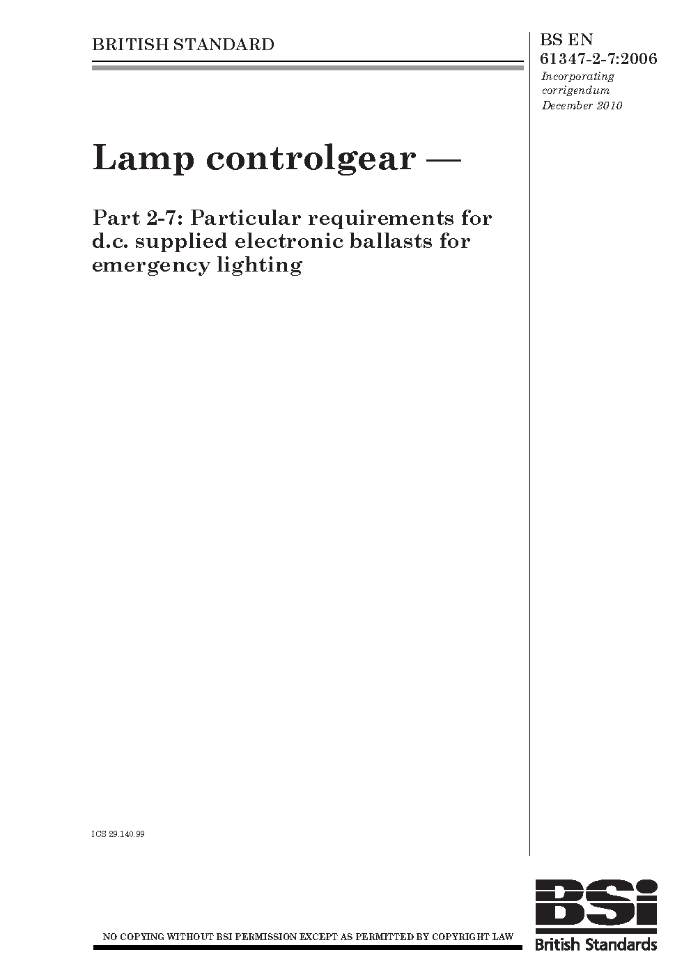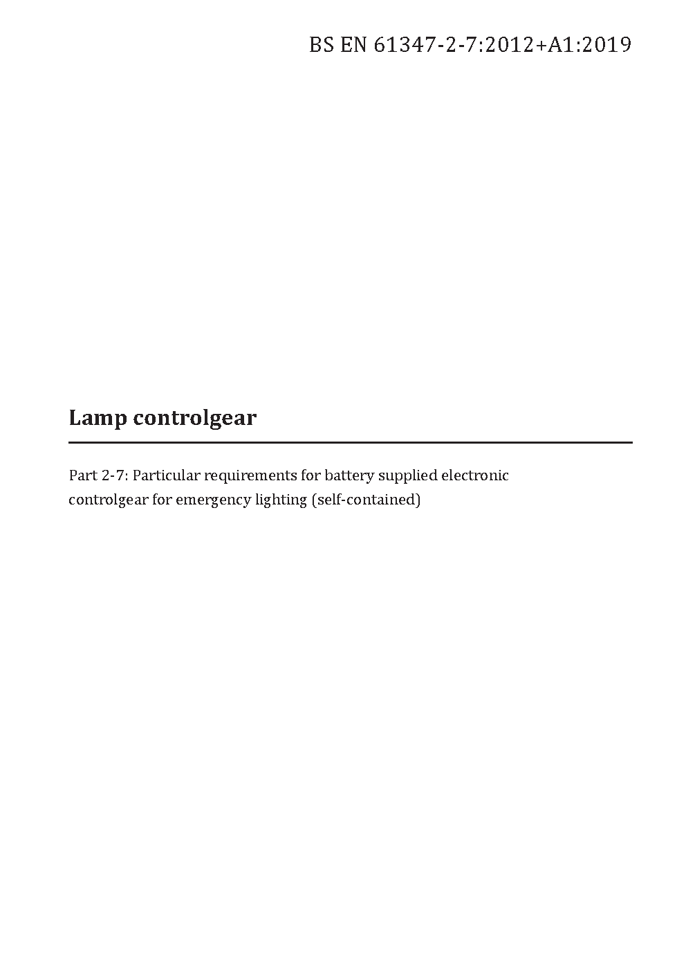 Lamp controlgear Particular requirements for battery supplied electronic emergency lighting (self-contained)
