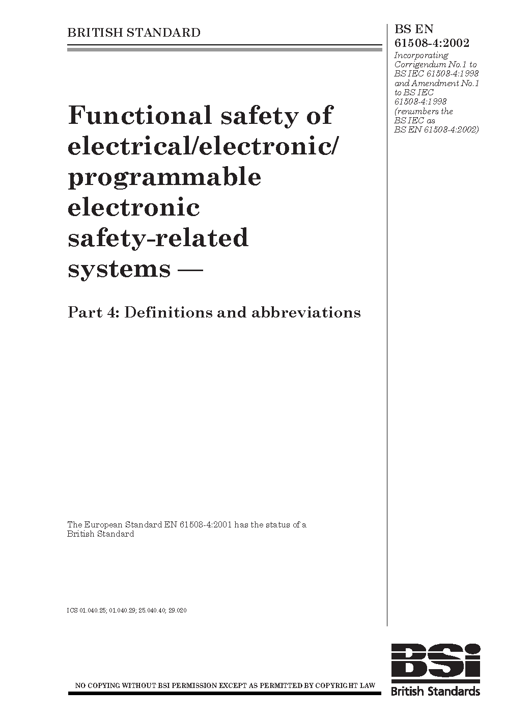 Functional safety of electrical/electronic/ programmable electronic related systems Definitions and abbreviations