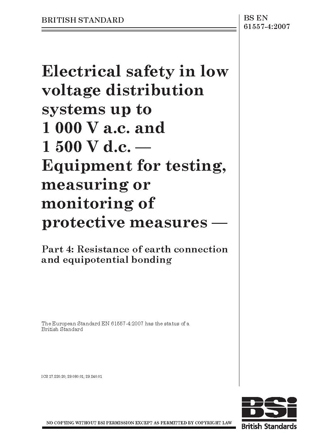 Electrical protection equipment;Electric terminals;Electrical safety;Safety devices;Mathematical calculations;Low-voltage equipment;Resistance measurement;Test equipment;Electrical measuring instruments;Low voltage;Marking;Errors;Electric conductors;Earth conductors;Voltage measurement