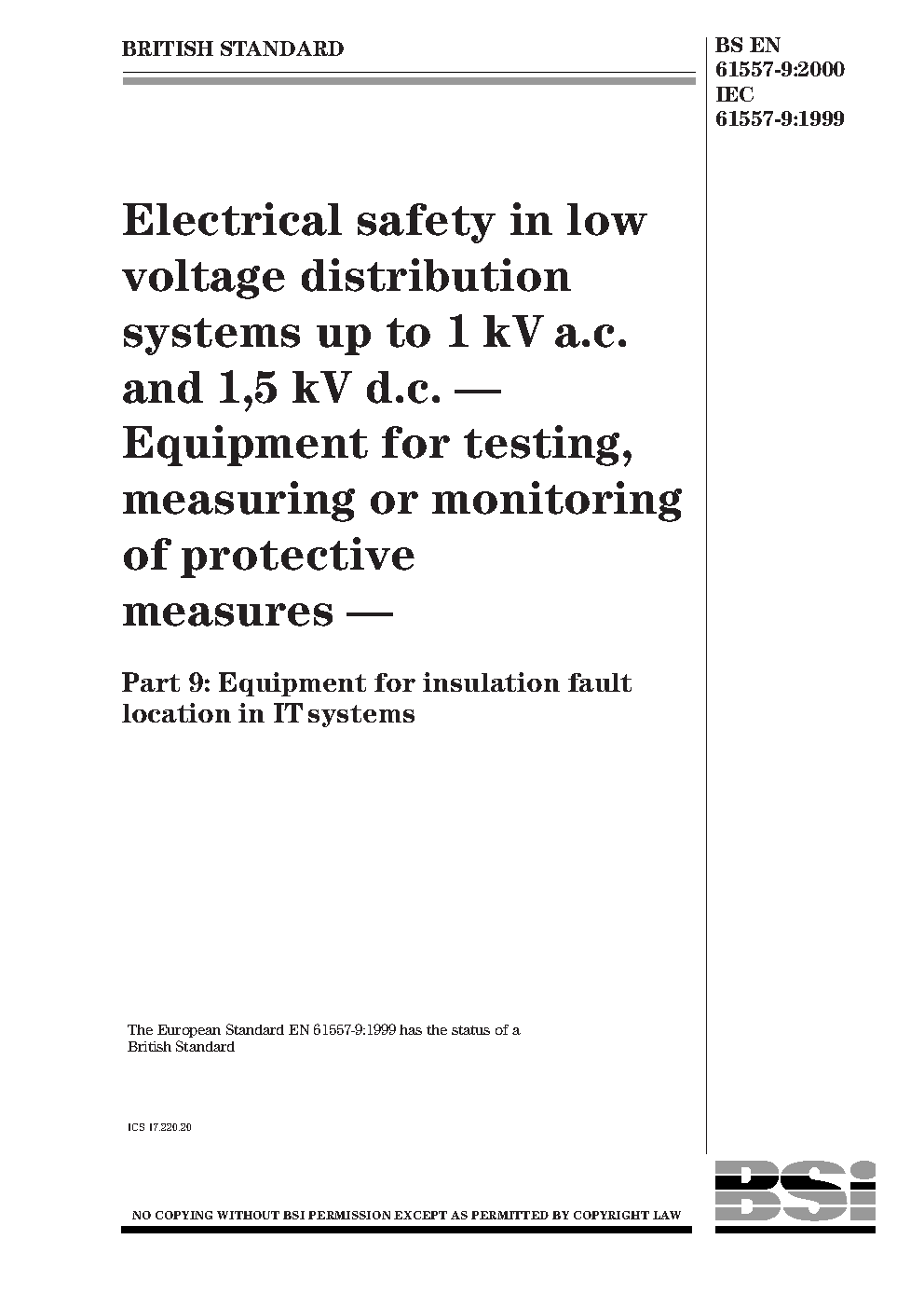 Electrical safety in low voltage distribution systems up to 1 000 V a.c. and 500 d.c. Equipment for testing, measuring or monitoring of protective measures insulation fault location IT