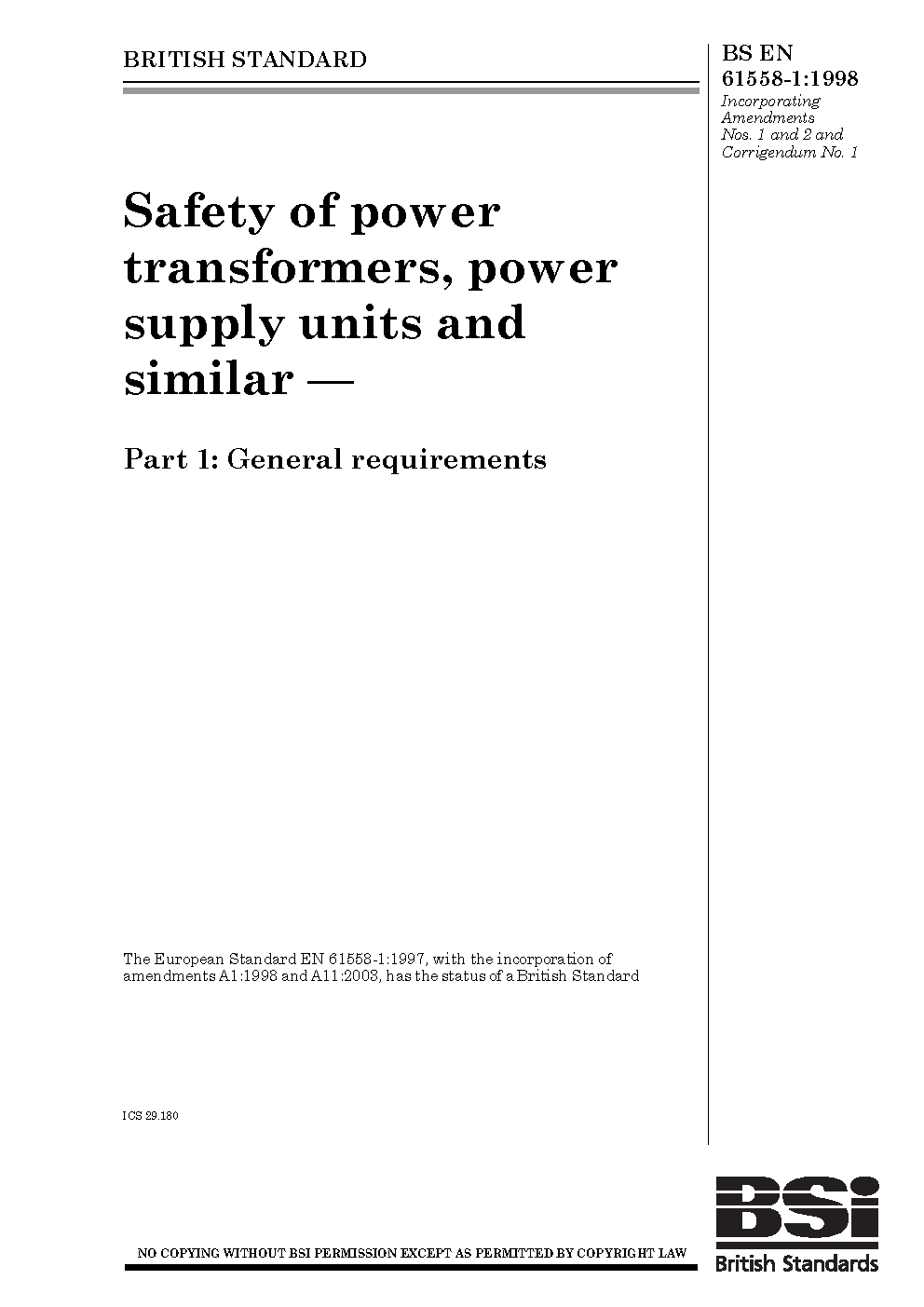 Safety of power transformers, supplies, reactors and similar products General requirements tests