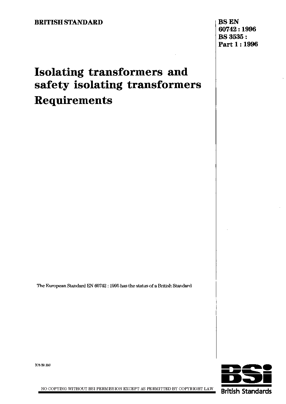 Safety of power transformers, supply units and similar Particular requirements for control transformers