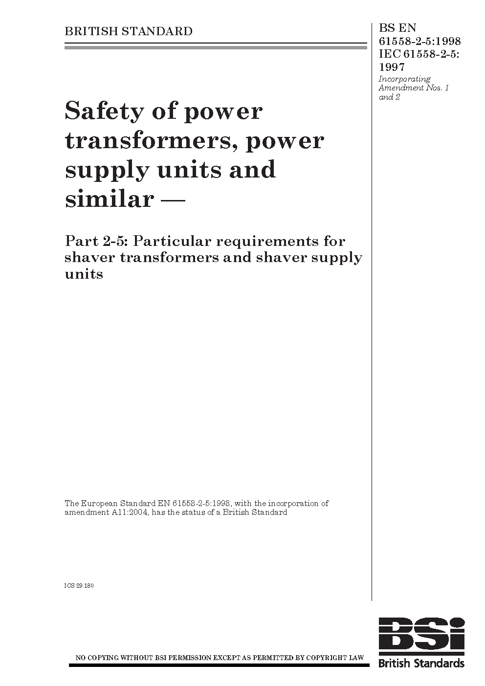 Electrical insulation;Impact testing;Electric shaver supply units;Classification systems;Safety isolating transformers;Shaving equipment;Rated voltage;Rated power;Electrical equipment;Electrical safety;Small-power transformers;Marking;Isolating transformers;Rated frequencies;Power transformers;Electric power systems;Razors;Transformers