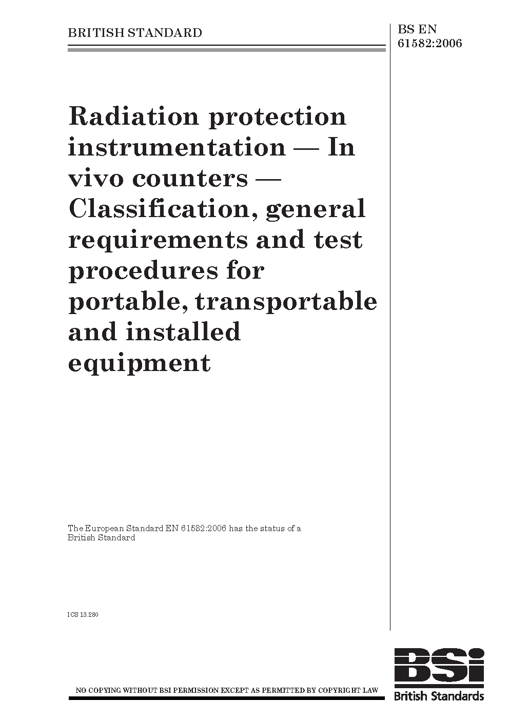 Radiation protection instrumentation. In vivo counters. Classification, general requirements and test procedures for portable, transportable and installed equipment