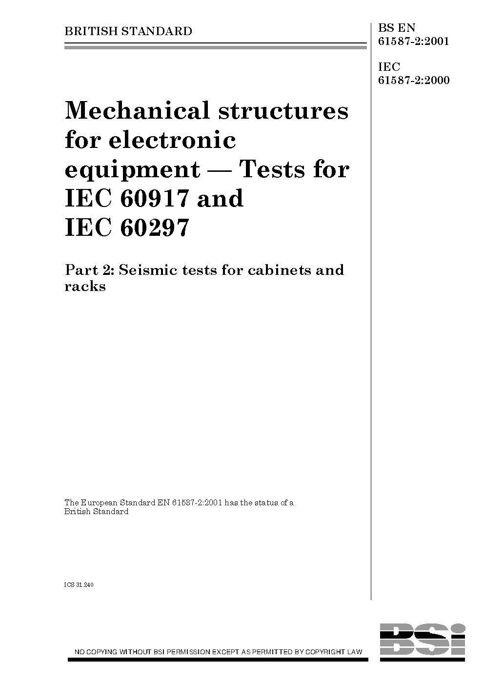 Mechanical structures for electronic equipment. Tests IEC 60917 and 60297 Seismic tests cabinets racks