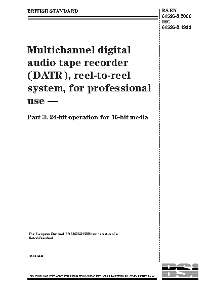 Multichannel digital audio tape recorder (DATR), reel-to-reel system, for professional use 24-bit operation 16-bit media