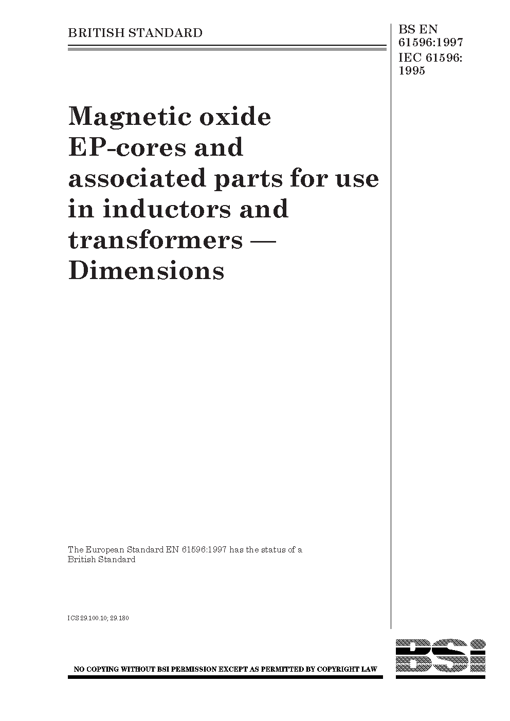 Magnetic oxide EP-cores and associated parts for use in inductors and transformers. Dimensions