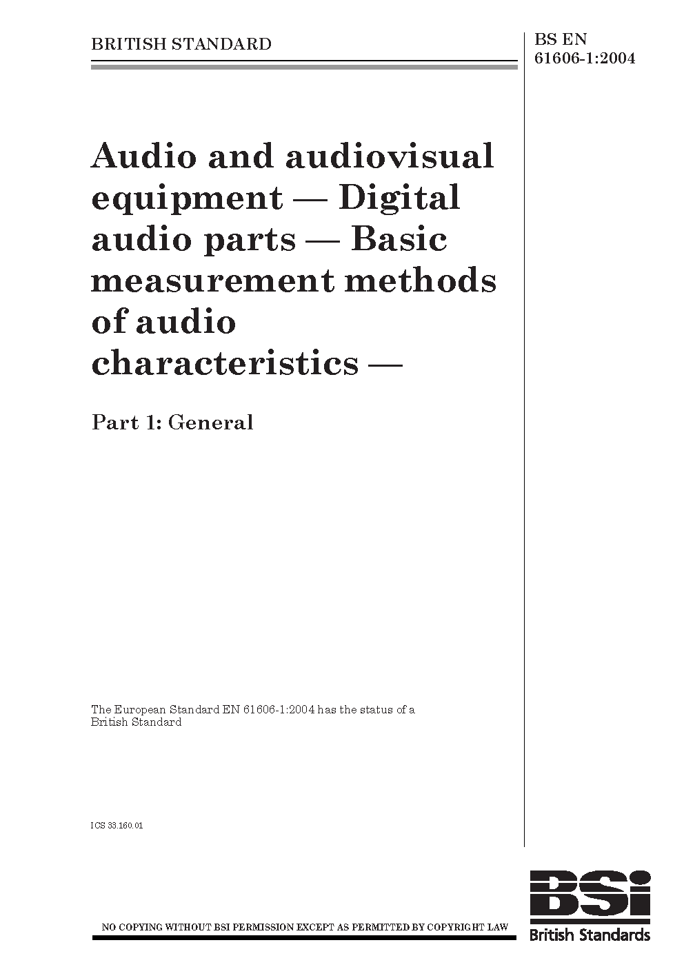 Audio and audiovisual equipment. Digital audio parts. Basic measurement methods of characteristics General