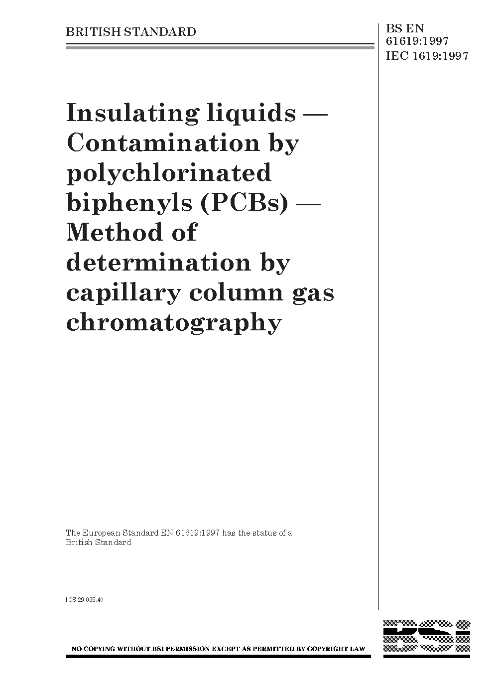Insulation liquids. Contamination by polychlorinated biphenyls (PCBs). Method of determination by capillary column gas chromatography