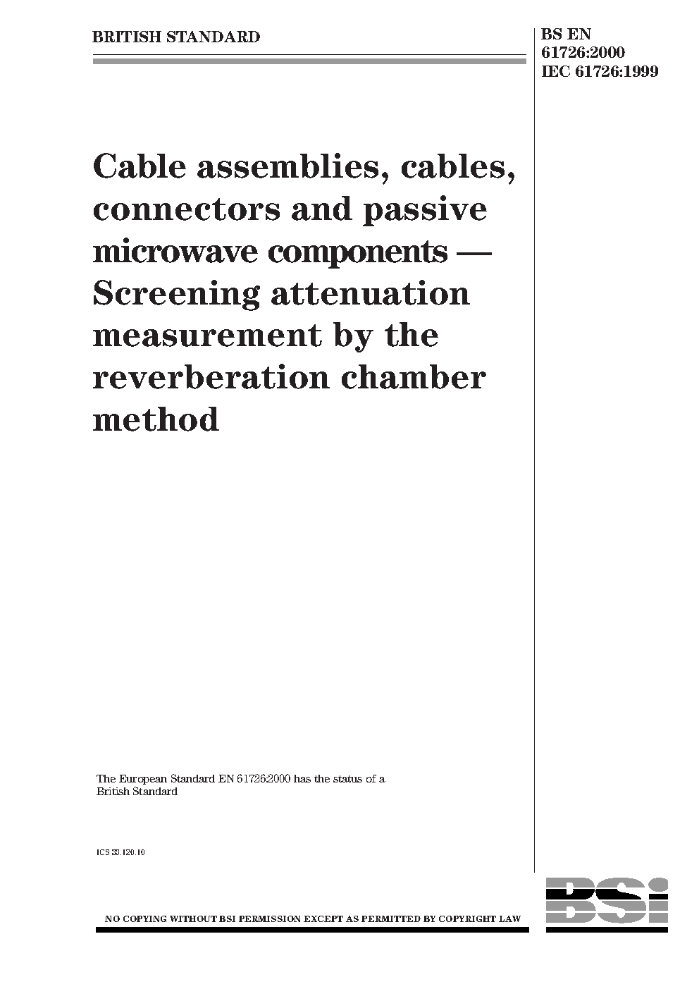 Cable assemblies, cables, connectors and passive microwave components. Screening attenuation measurement by the reverberation chamber method