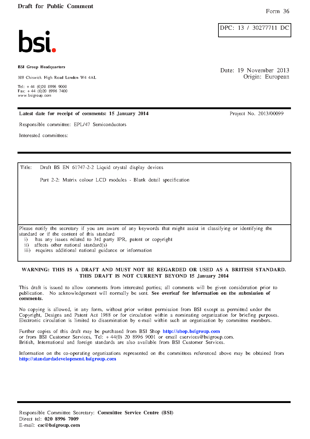 Liquid crystal display devices Matrix colour LCD modules. Blank detail specification
