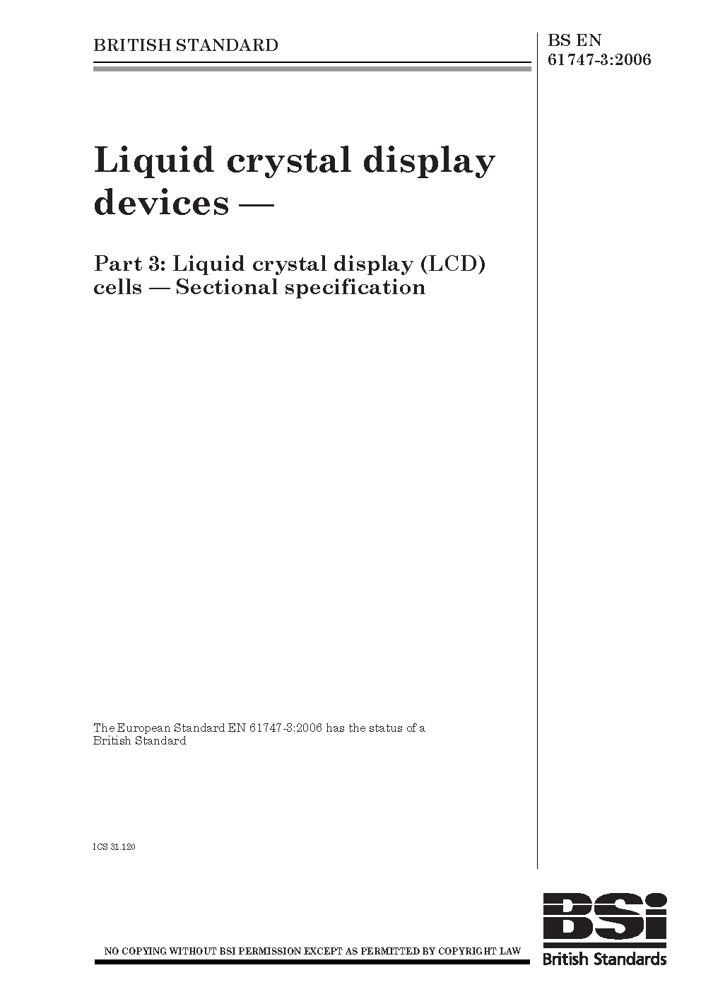 Liquid crystal display devices (LCD) cells. Sectional specification
