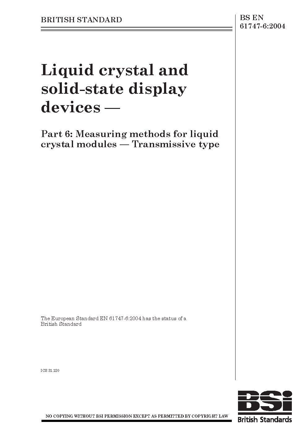 Liquid crystal and solid-state display devices Measuring methods for liquid modules. Transmissive type