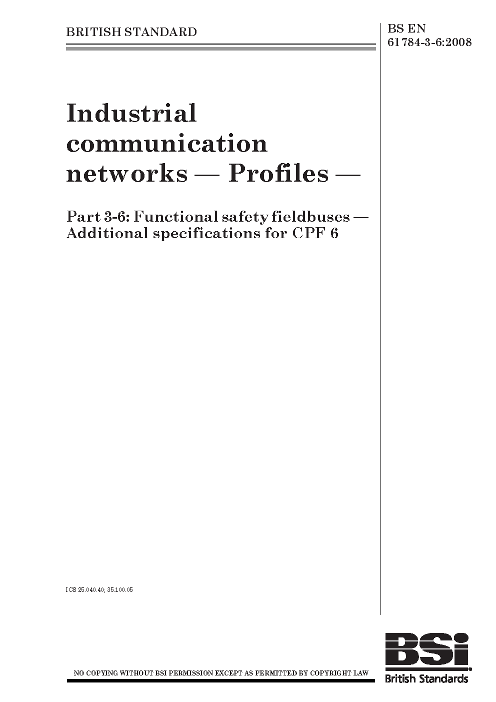 Industrial communication networks. Profiles Functional safety fieldbuses. Additional specifications for CPF 6